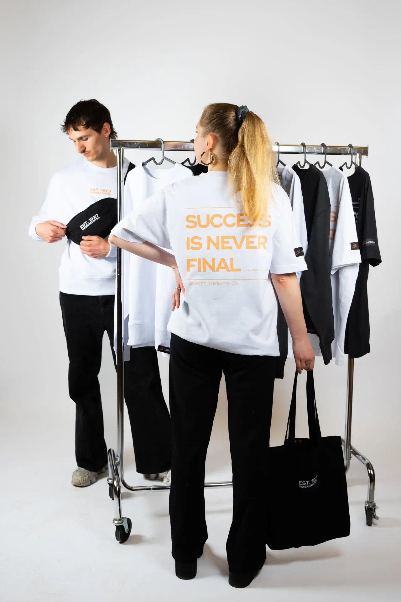Unternehmen wie Marriott Hotels vertrauen auf unsere Expertise, wenn es um hochwertige Arbeits- und Unternehmensbekleidung geht. Wir begleiten unsere Kunden von der Auswahl nachhaltiger Textilien über die Gestaltung bis hin zur Veredelung mit Stick oder Druck – alles aus einer Hand.